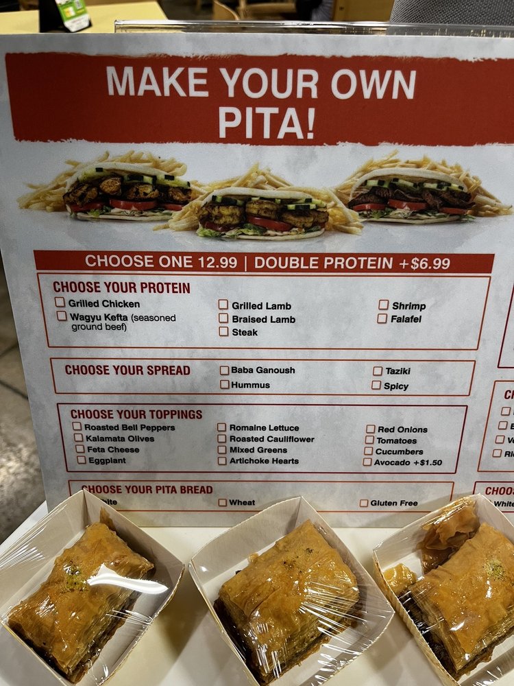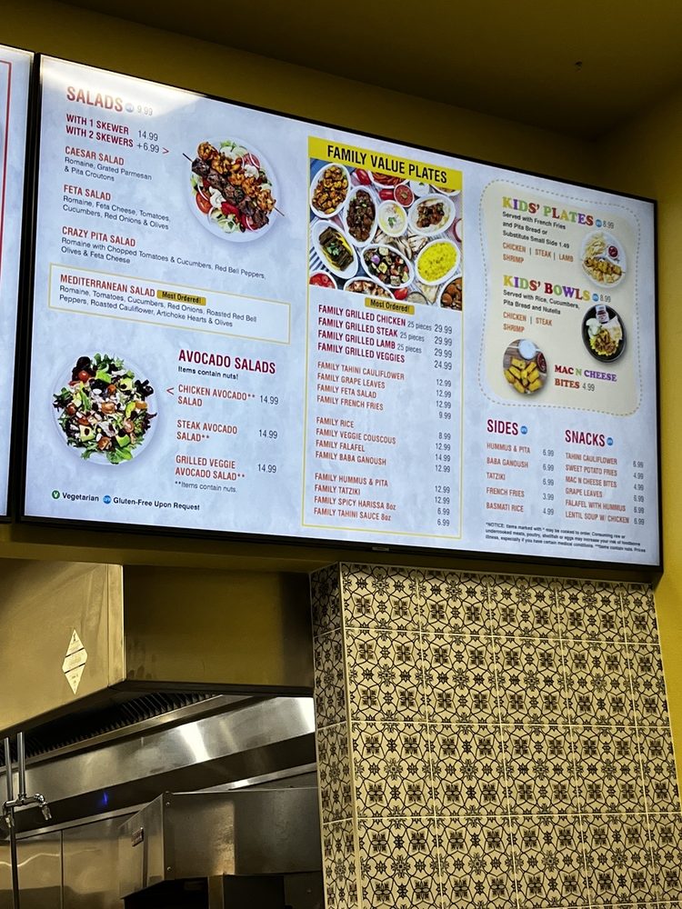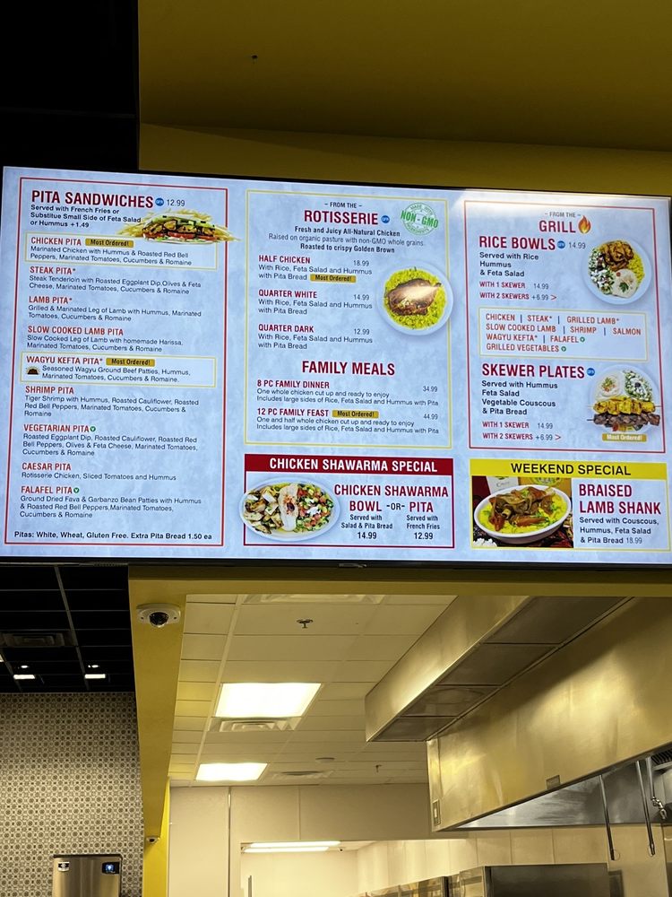 Highlights of the menu include hearty Skewer Plates featuring the famous rotisserie chicken paired with fresh avocado, and a selection of tantalizing sides like Baba Ganoush and the irresistible Baklava. Reviews rave about the affordable prices and the unique flavor combinations that make dining here a memorable experience.